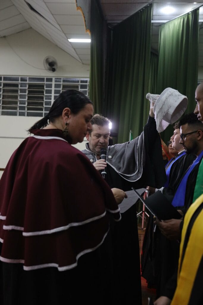 Entre os formandos, o sentimento era de gratidão e superação. Cristiano Farias dos Santos, graduado em Direito, descreveu a conquista como a realização de um sonho após uma trajetória de renúncias e desafios. Ele destacou o apoio de amigos e familiares, em especial da esposa, Raquel, que esteve ao seu lado em todos os momentos. “Se hoje conquistei algo, o mérito é todo dela”, afirmou emocionado.