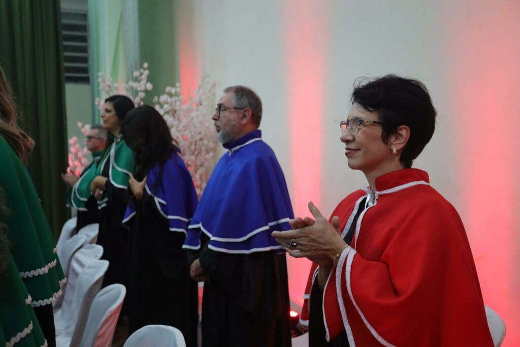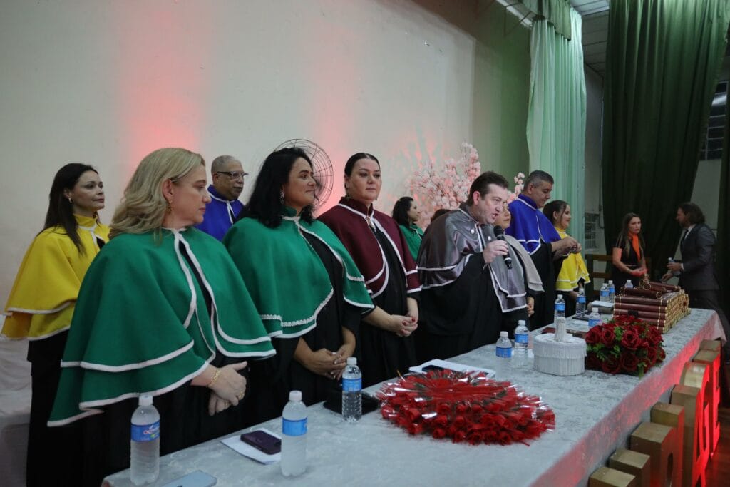 Receberam seus diplomas os formandos dos cursos de Bacharelado em Direito, Enfermagem, Administração, Educação Física, Farmácia e Fisioterapia, além dos cursos Tecnológicos em Gestão de Recursos Humanos, Logística, Estética e Cosmética e Marketing e da Licenciatura em Pedagogia. Durante a cerimônia, professores homenageados foram reconhecidos por seu papel na trajetória acadêmica dos alunos, e familiares receberam uma menção especial pelo apoio ao longo da caminhada universitária.