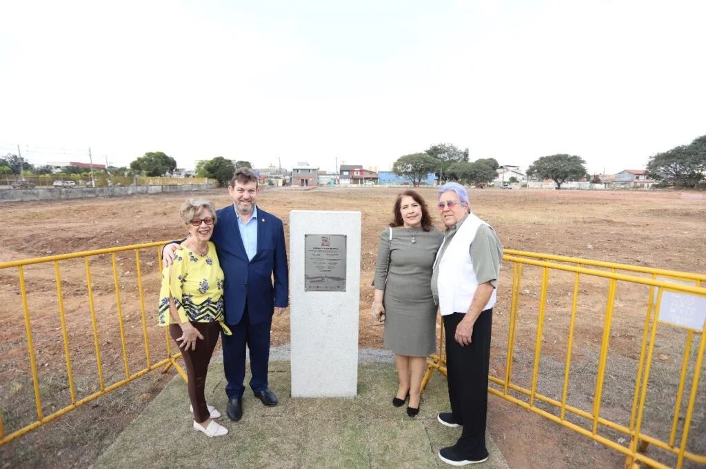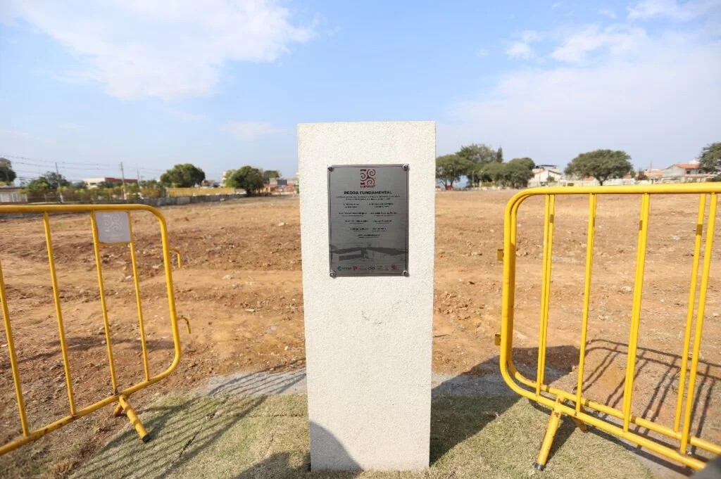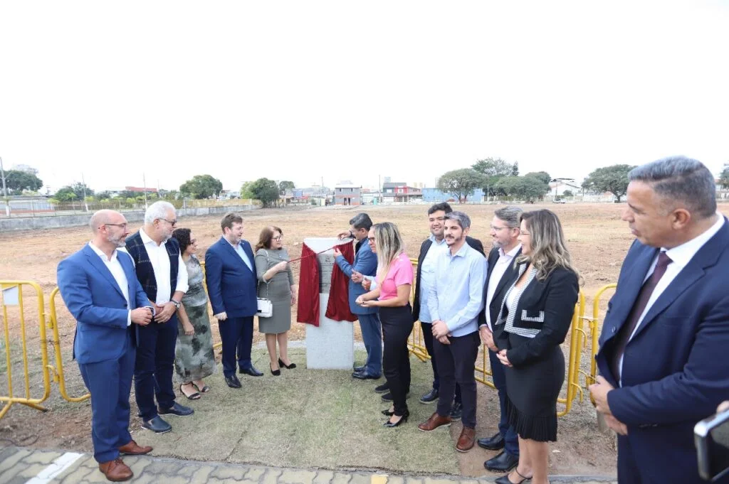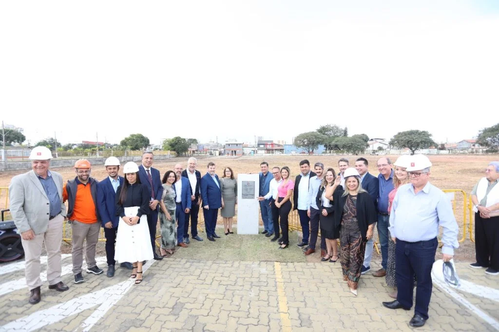 Depois da cerimônia no auditório do Centro Universitário, os convidados seguiram até o canteiro de obras para o lançamento da pedra fundamental. No local ocorreu o descerramento de uma placa de início das obras, que inclusive já começaram.