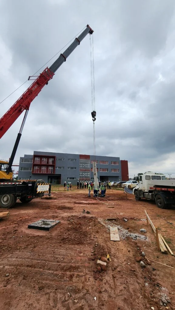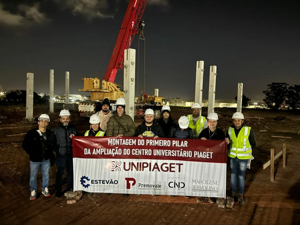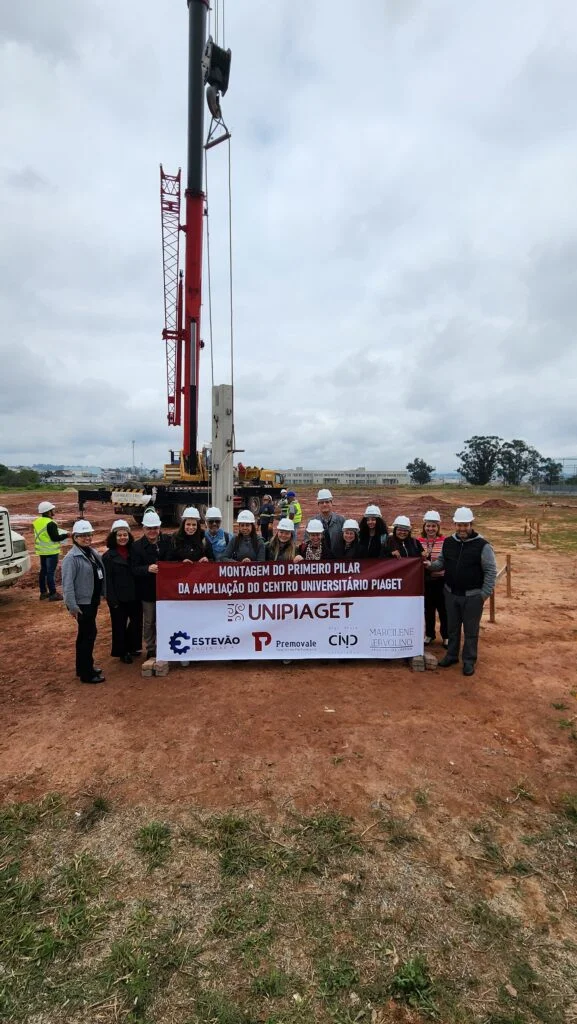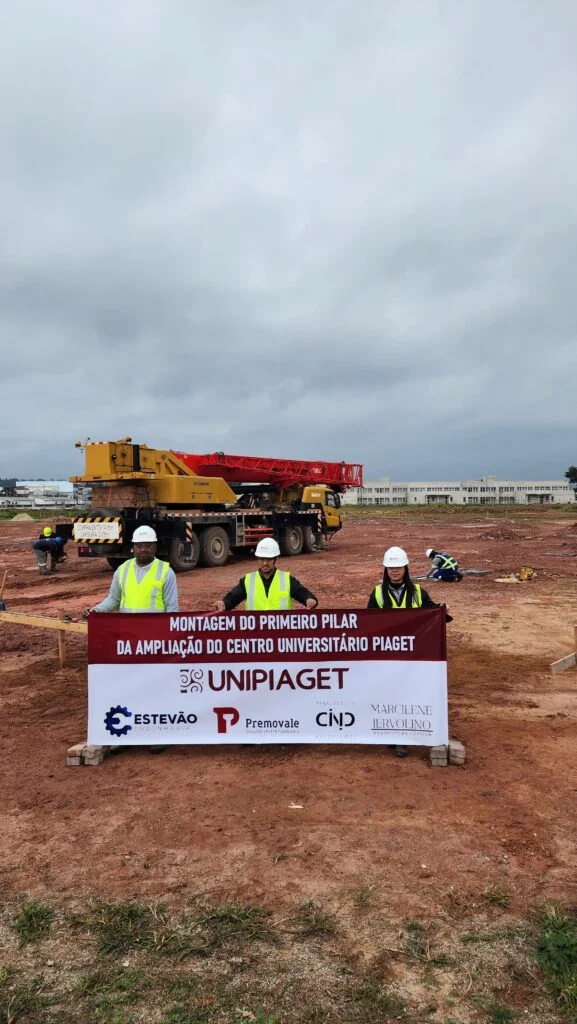 Na manhã desta terça-feira (13/08), o Centro Universitário Piaget realizou a montagem do primeiro pilar do projeto de expansão do campus universitário. Estiveram presentes, o reitor Marcus Rodrigues, a pró-reitora acadêmica, Poliana Lima, a coordenadora de extensão, Karolyne Rodrigues, docentes e alunos.