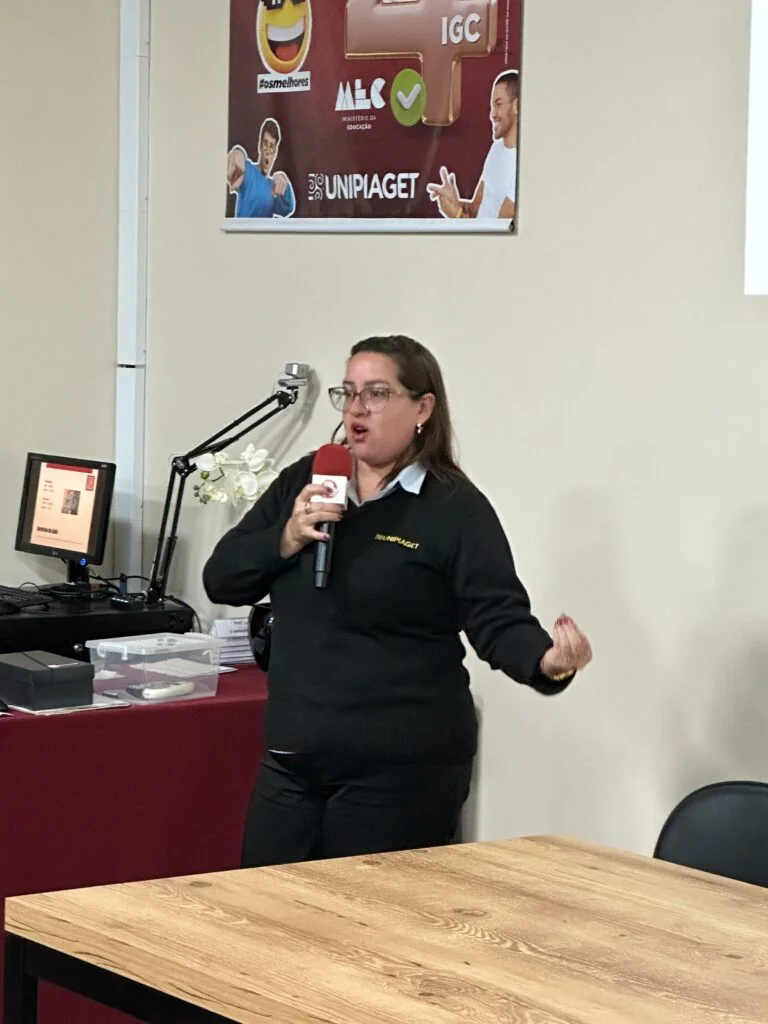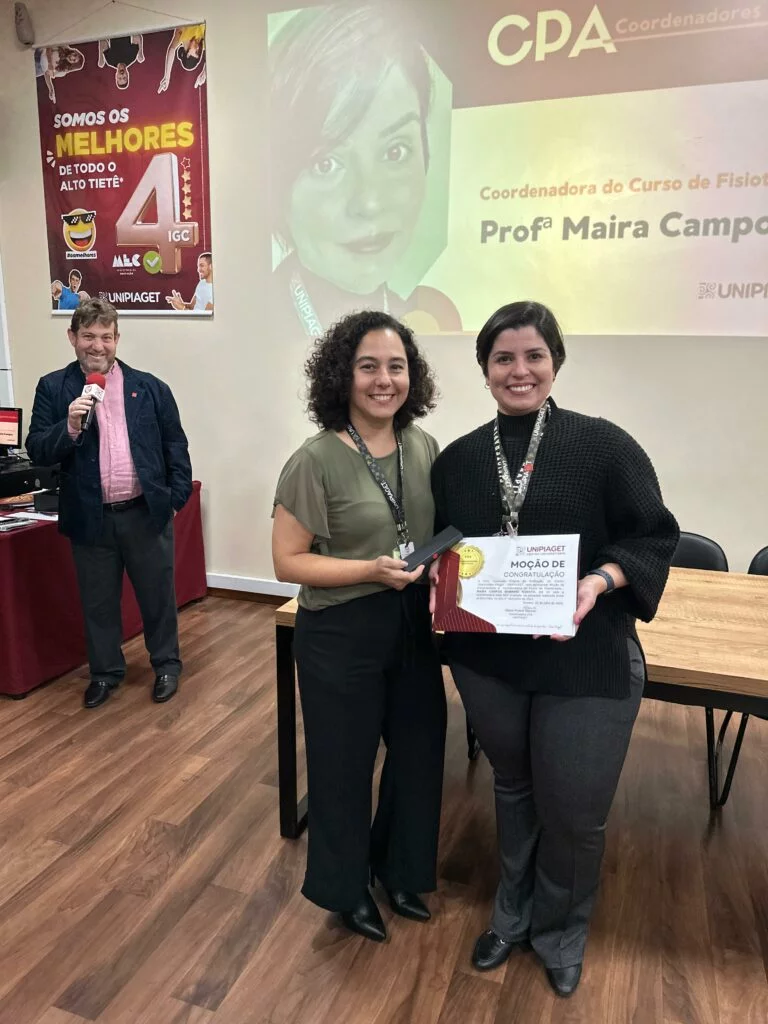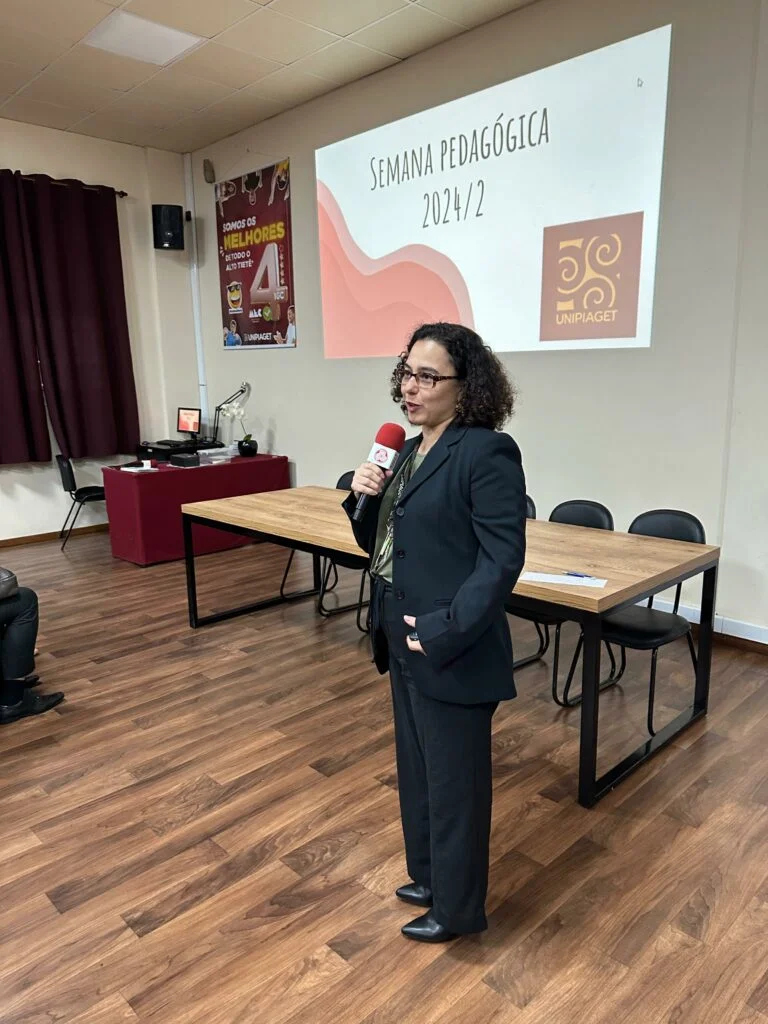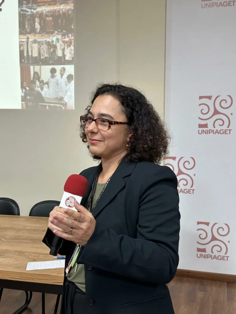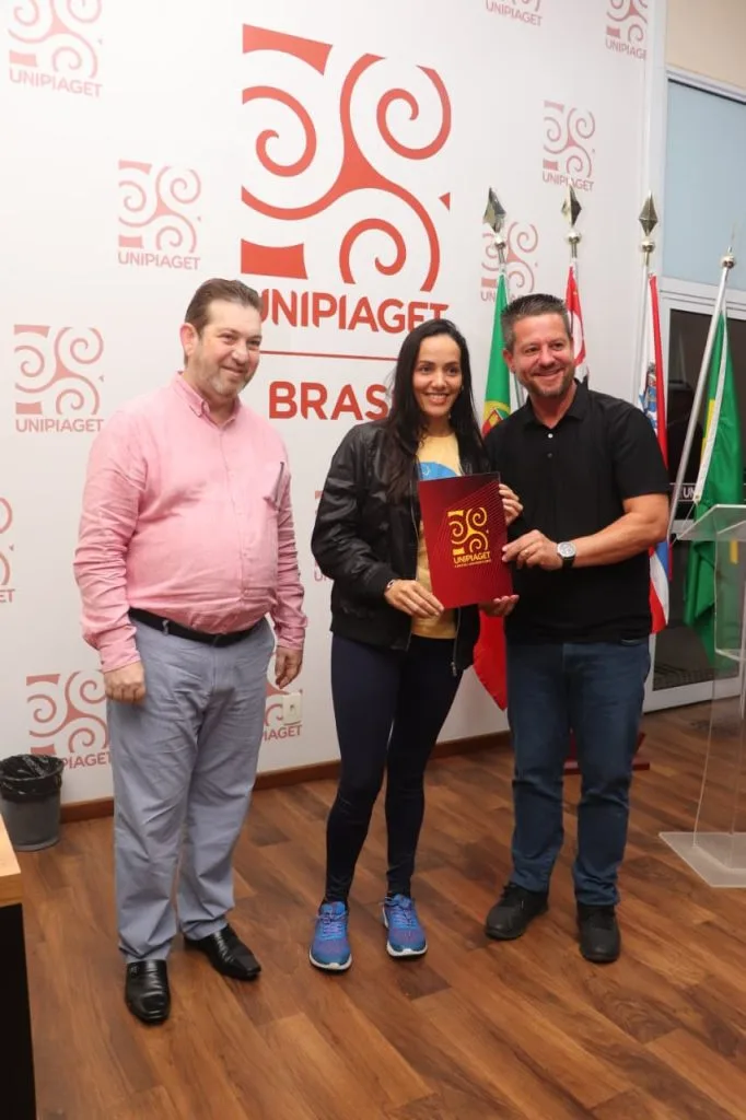 Durante sua fala, a coordenadora Profa. Gleice Branco reforçou a dimensão histórica desse momento para o curso. “Ele vai ser guardado dentro do meu coração na minha trajetória acadêmica. Agradeço ao Unipiaget que está dando sempre oportunidades para os alunos da Educação Física. Eu sempre falo para eles, aproveitem cada momento aqui com a gente para vocês aprenderem, se especializarem e serem os melhores profissionais lá fora. É isso que a gente quer”. Ela ainda destacou a importância de todos os parceiros presentes, que acolhem os estudantes para estágio.