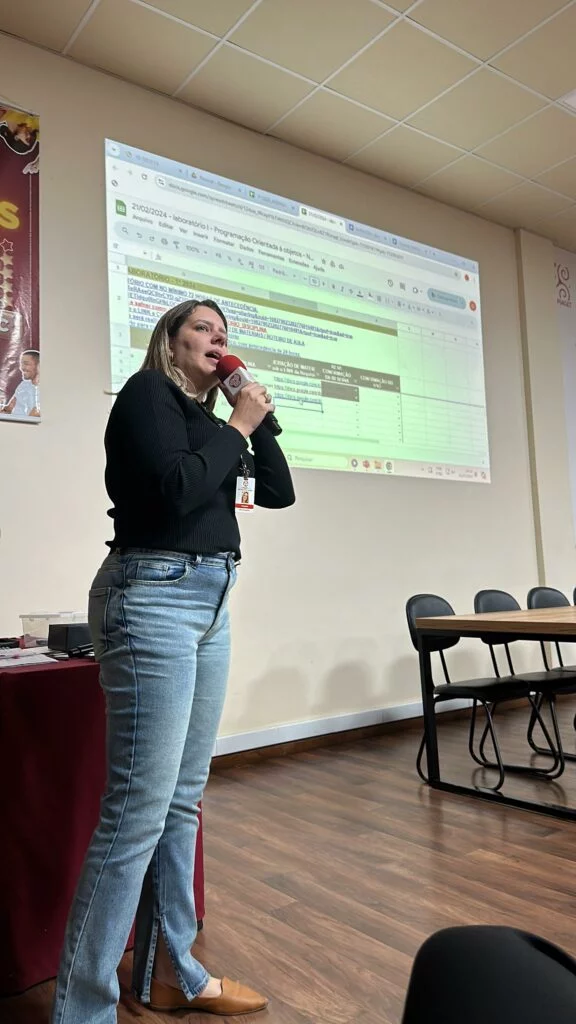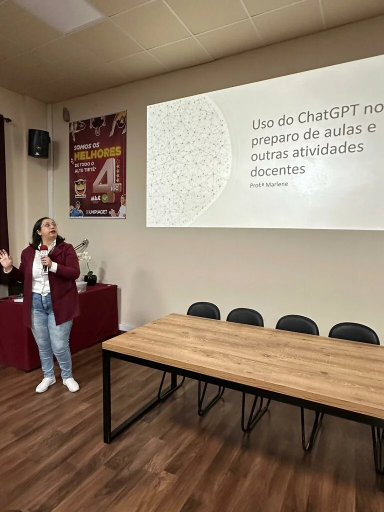 Por fim, a professora de Tecnologia da Informação Profa. Marlene Oliveira, fez uma capacitação sobre Inteligência artificial voltado aos professores, ensinando como usar o chat GPT4 na educação.