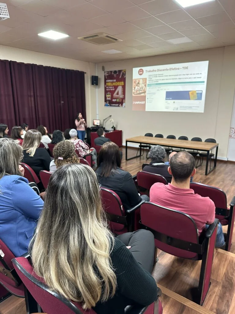 Ao longo do encontro, as coordenadoras de cursos, Profa. Débora Cortez, de Enfermagem, e Profa. Aline Souza, de Farmácia e Biomedicina, também fizeram uso da palavra, onde foram ministradas capacitações sobre o portal docente e sobre as ferramentas digitais de trabalho com os alunos.