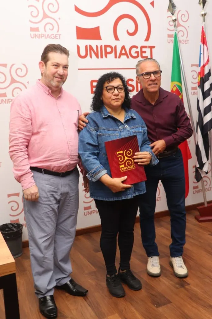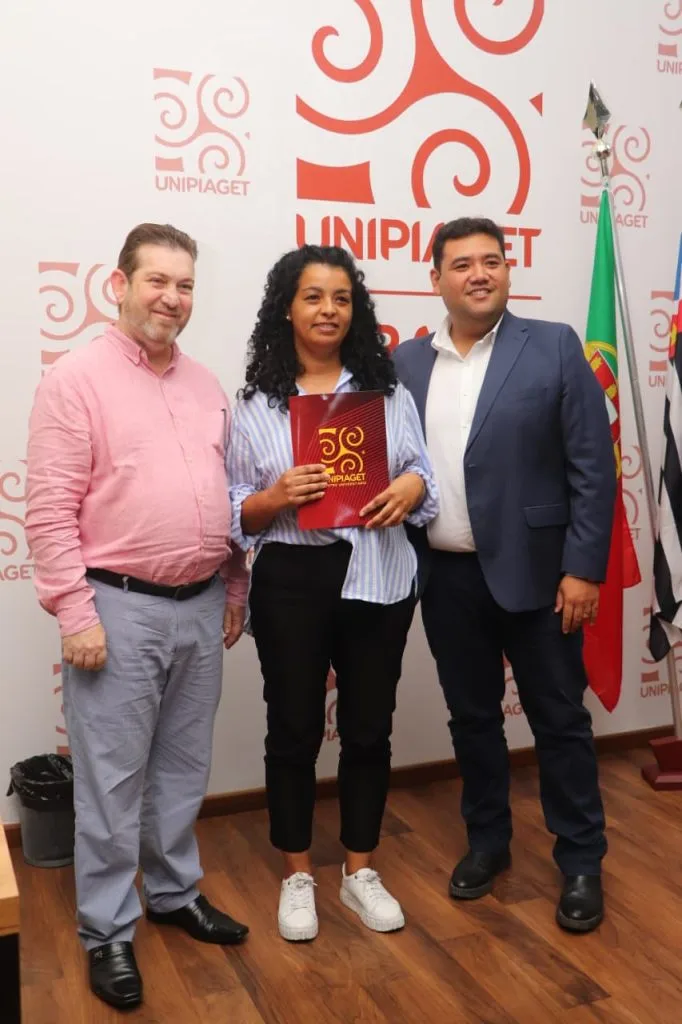 Na noite de terça-feira, 16 de setembro, o auditório do Centro Universitário Piaget recebeu a cerimônia de entrega de bolsas de estudo integrais referentes ao segundo semestre de 2025. Os nove estudantes contemplados passam a cursar gratuitamente a graduação escolhida até a conclusão do curso, desde que cumpram as normas estabelecidas em contrato.