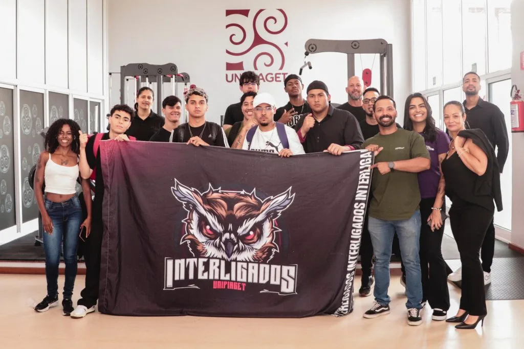 Em seguida, todos foram conduzidos ao novo espaço para o descerramento da faixa na entrada da Academia Escola, marcando oficialmente o início de um novo capítulo para o curso de Educação Física do Unipiaget: formação, experiência e ciência acontecendo ao vivo dentro do Centro Universitário.