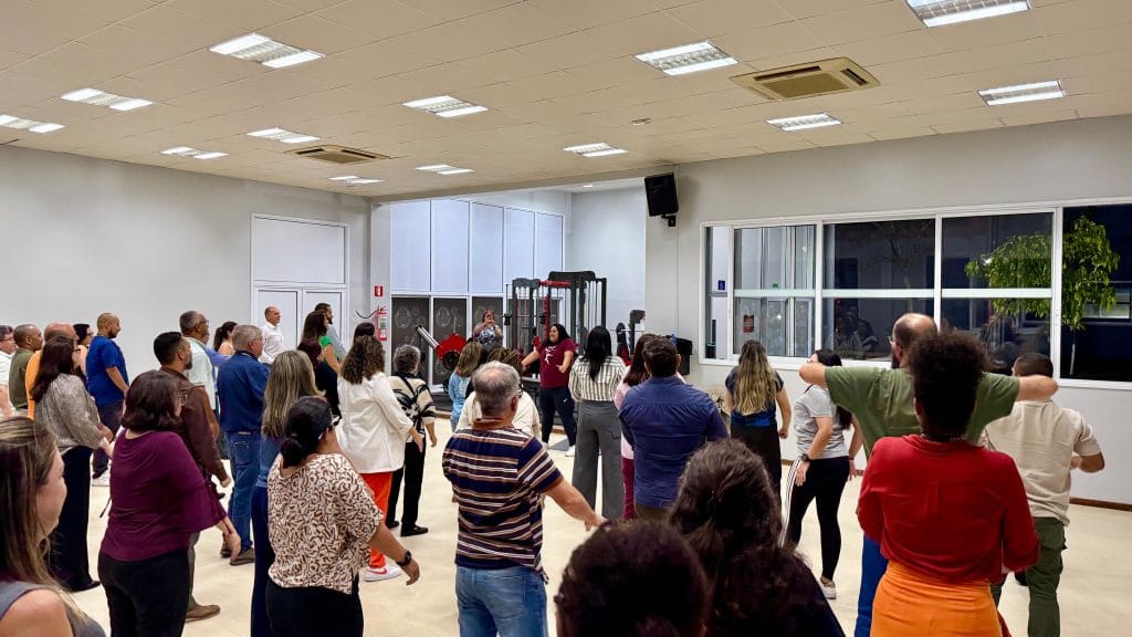 Ainda na noite de abertura, foi realizada uma capacitação docente, que contou com uma dinâmica pedagógica desenvolvida em formato de aula de dança, realizada no espaço multiuso da instituição. A atividade foi conduzida pela coordenadora do curso de Educação Física, Profa. Gleice Branco, com o auxílio da Profa. Caroline Cavalcante.