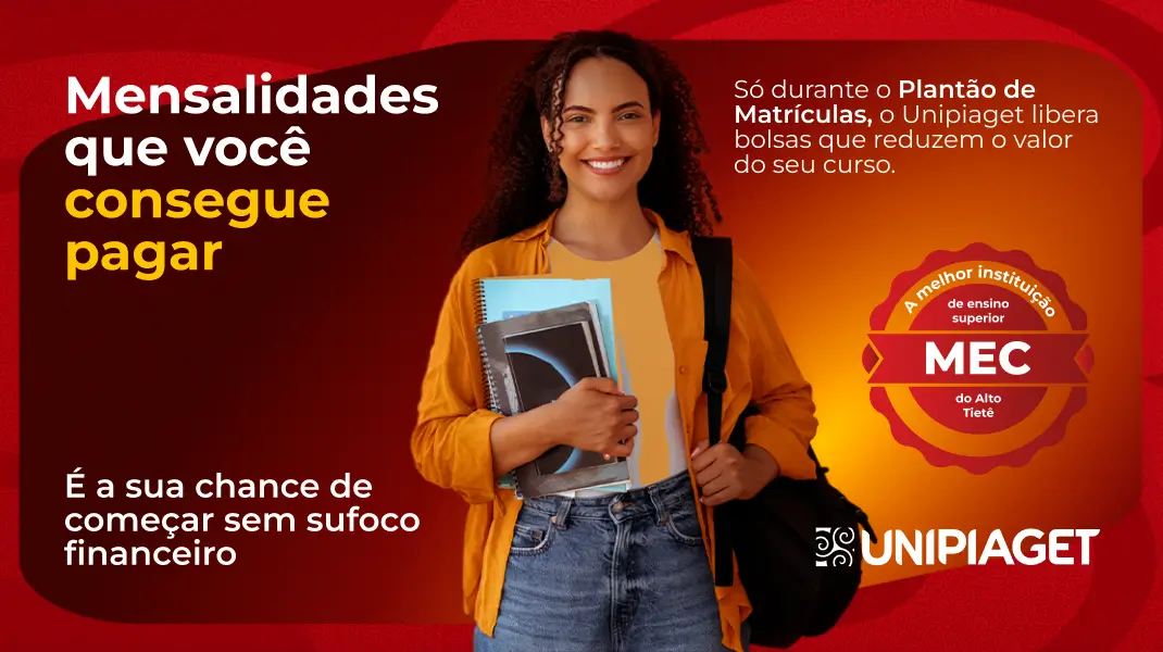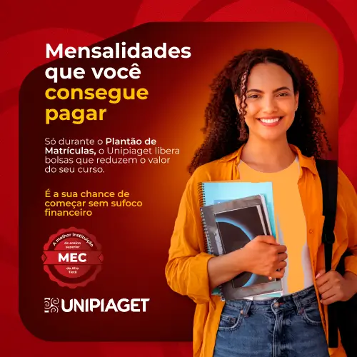 Não deixe o seu futuro para depois. A Faculdade UNIPIAGET preparou condições especiais para você estudar em uma das melhores instituições da Região, com qualidade reconhecida, estrutura de ponta e cursos alinhados ao mercado.
